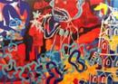 Raymond Dupuis, Wolustuk (Malécite), calligraphie son long parcours d’amérindien dans Hochelaga/Montréal en un lent panorama de son existence urbaine. Il en dessine la territorialité mnémonique dans une murale de près de 90 pieds ! Ce rapport au territoire s’exprime à travers une série d’œuvres amalgamant huile, collages et photographies. Par le biais de ces œuvres, l’artiste reformule à l’intérieur d’un code de transmission une nouvelle narration identitaire, tentant de reconfigurer les territoires oubliés et perdus. Guy Sioui Durand, Wendat (Huron), théoricien, critique d'art et commissaire indépendant, fera une présentation du travail de l’artiste lors du vernissage le 28 mai et donnera une conférence le 4 août. Cette exposition est présentée en collaboration avec le Festival Présence Autochtone organisé par Terres en vues. Voir la mise à jour des activités sur accesculture.com
