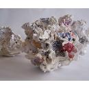 S’intéressant au thème de l’identité en relation avec l’impermanence, c’est par le biais de tableaux reliefs, d’installations et de mises en espace immersives que l’artiste gaspésienne aborde son travail. L’exposition ENGRAMME est composée, entre autres, de trois bandes se déroulant sur le sol. Tels des chemins, ces bandes sont recouvertes d’écritures imaginaires qui s’effacent progressivement dans la matière. Le centre de l’installation est constitué d’un cercle de milliers de moulages en plâtre en forme de stûpa. La mise en espace est conçue et pensée de manière à envelopper le visiteur, à lui faire vivre une immersion sonore, visuelle et tactile. Il est invité à marcher sur les bandes au sol et à faire partie intégrante de l’installation.